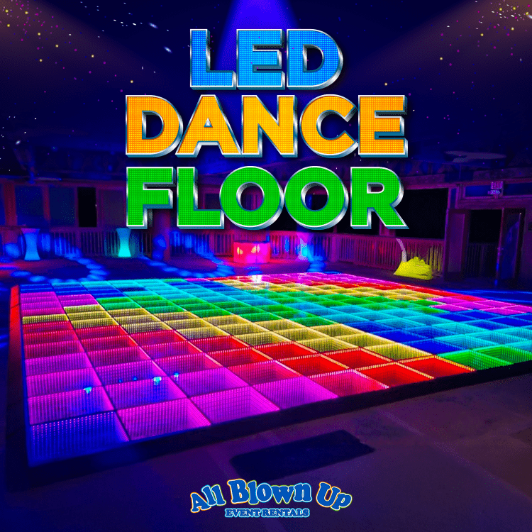 Looking to rent an LED dance floor for your next event? All Blown Up offers high-impact LED dance floors in sizes from 12x12 to 20x20, perfect for weddings, Bar/Bat Mitzvahs, corporate events, proms, and private celebrations.
